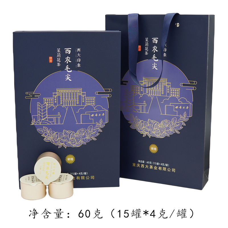 西南大學出品 毛尖崇德 小罐 茉莉花茶 西大印象 西農(nóng)茶葉 禮盒裝60克
